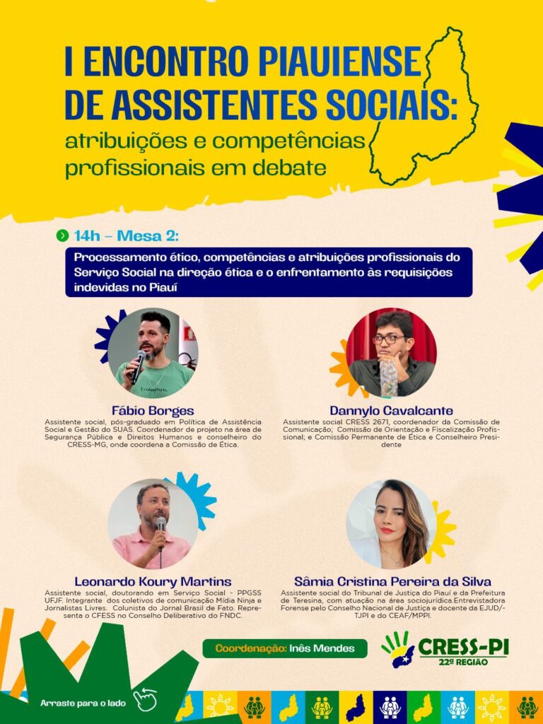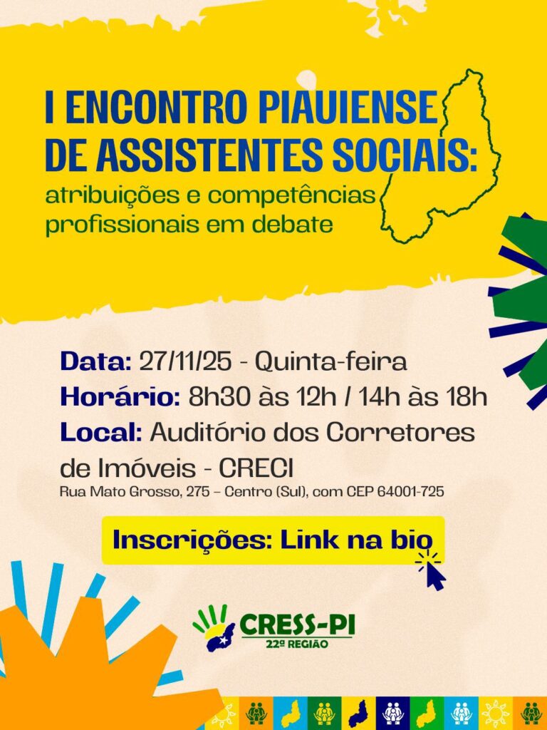 O CRESS-PI convida assistentes sociais de todo o estado para o I Encontro Piauiense de Assistentes Sociais: atribuições e competências profissionais em debate, que acontecerá no dia 27 de novembro.
