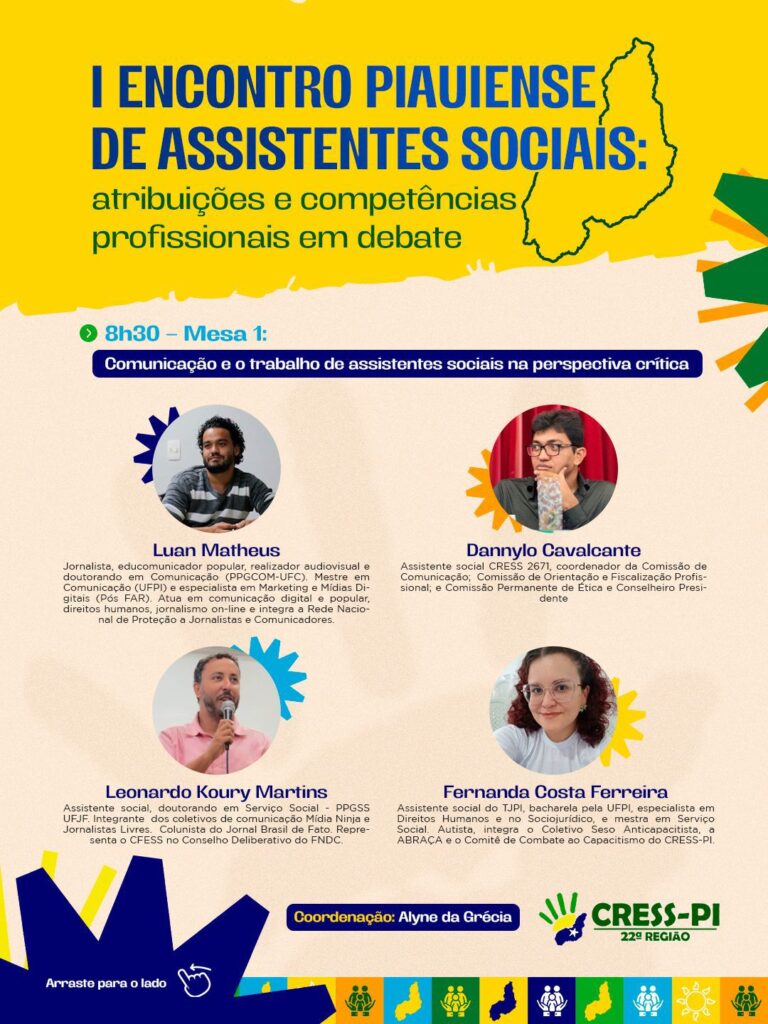Será um dia inteiro de discussões fundamentais sobre comunicação, competências profissionais, direção ética e o enfrentamento às requisições indevidas no Serviço Social.