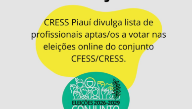 CRESS-PI divulga primeira lista de profissionais aptos a votar nas Eleições 2026-2029 O Conselho Regional de Serviço Social da 22ª Região (CRESS-PI) divulga